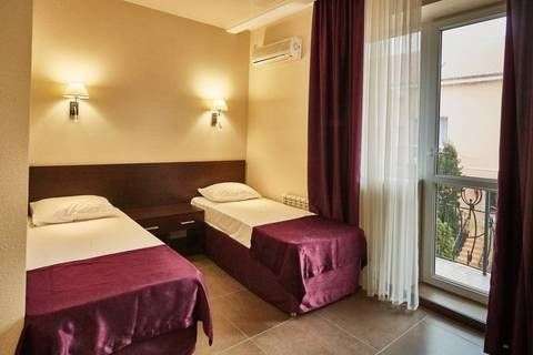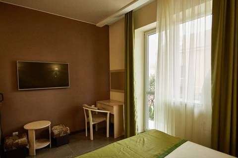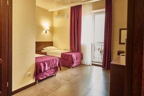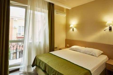 Номер укомплектован двуспальной кроватью «King size» или двумя полутораспальными раздельными кроватями на ваш выбор. Есть возможность выбрать цветовое решение интерьера (оливковый, шоколад, пастельные тона).